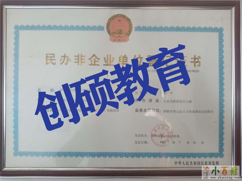 创硕电脑培训学校,是由邯郸市邯山区人事劳动和社会局批准的1所正规的计算机专业培训学校,始终坚持以诚信为本、质量为办学宗旨,致力于打造邯郸实力强、专业的培训机构小百姓网。到创硕电脑培训学校学习,可以学到前沿的计算机技能,为毕业后就业提供帮助小 百 姓 网。同时也是在校大学生计算机等级培训选择的佳培训机构www.xbaixing.com小百姓网。